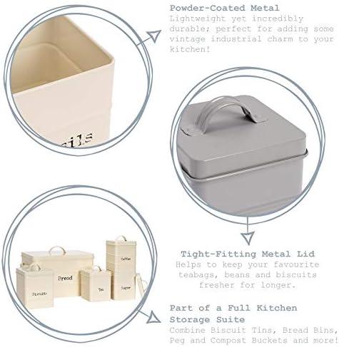 Harbour HouseWares Vintage Sugar Storage Canister - Metal Square Jar Airtight Seal
